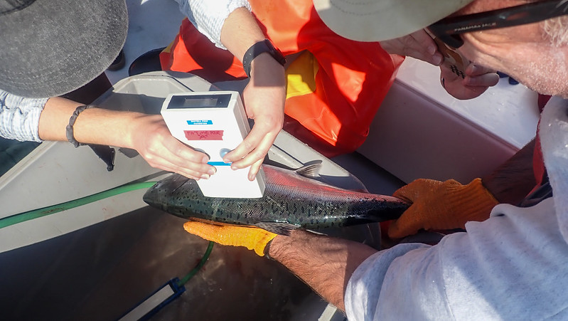 Angler participation is particularly important for monitoring recreational and commercial fisheries. For example, the California Department of Fish and Wildlife (CDFW) collects heads from hatchery-origin salmon harvested by anglers at sea during salmon fishing seasons. The heads of these adipose fin-clipped salmon contain a tiny tag that tells scientists the fish’s hatchery of origin. These data inform hatchery practices and support California’s struggling salmon populations.